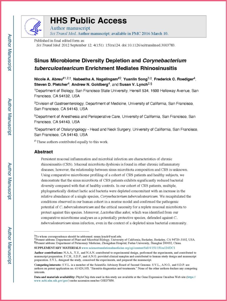 By re-introducing Lactobacillus sakei to our bodies (targeting both sinus and gut microbiome), it has been shown that sinus health is greatly improved naturally without any risk of side effects.