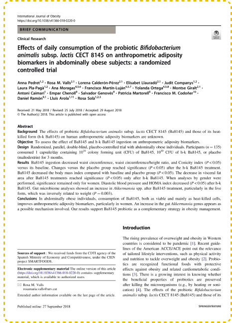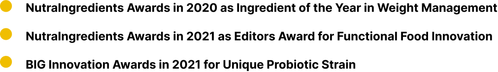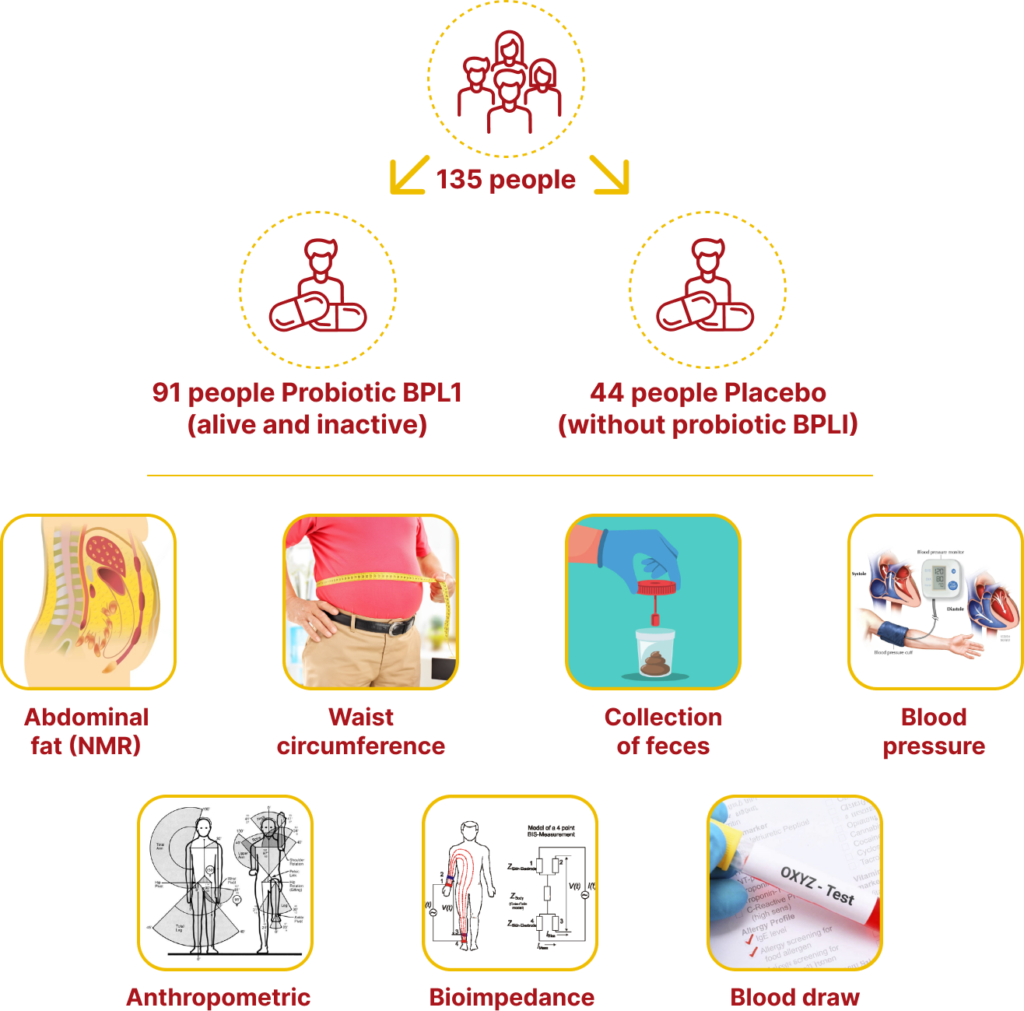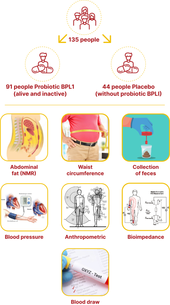 More than 9 years of research and development, a Spain proprietary and award-winning probiotic strain BPL1® (Bifidobacterium animalis subsp. lactis CECT 8145) is developed with clinically documented results in improving body mass index (BMI), waist circumference (WC), and central adiposity.