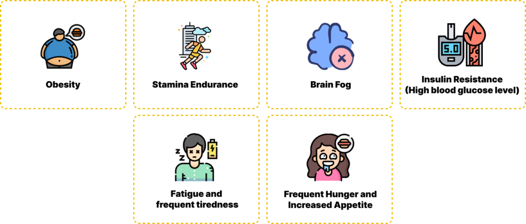 But more subtly, poor metabolic health can look like the full spectrum of daily pain points of modern living that keep us from reaching our full potential and goals: fatigue, brain fog, depression, anxiety, lack of exercise endurance, infertility, balding, erectile dysfunction, acne, chronic pain, increased appetite, and more.