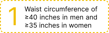 If we meet 3 out of the 5 criteria above, we have what’s known as metabolic syndrome or insulin resistance syndrome. Metabolic syndrome increases our risk of developing chronic diseases like Type 2 diabetes, heart disease, and stroke.