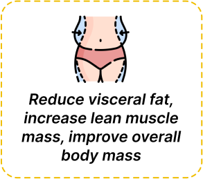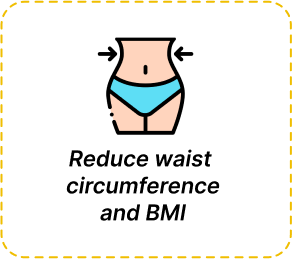 Reduces BMI (Body Mass Index), waist circumference and visceral fat mass