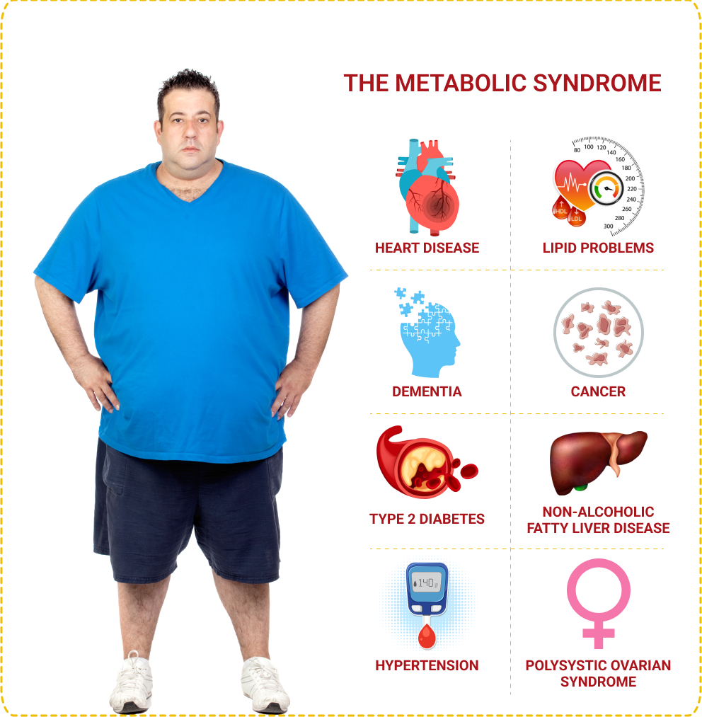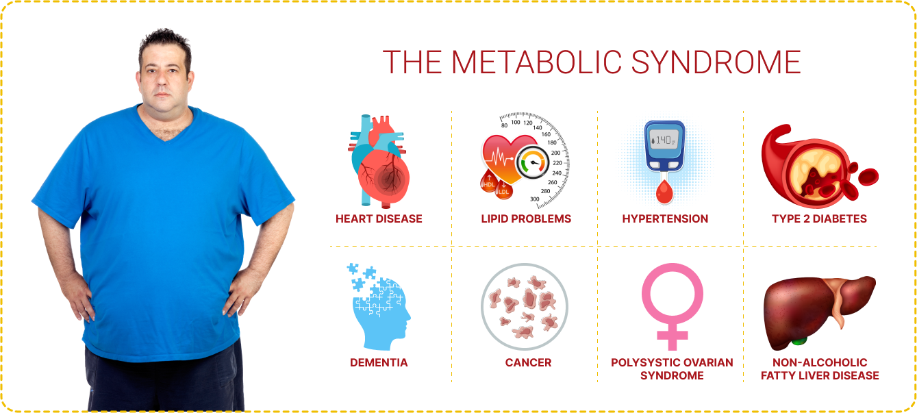 Data from several studies have demonstrated that the metabolic syndrome is associated with a 3 to 4 fold increased risk of cardiovascular disease, cardiovascular mortality, and stroke. Metabolic Syndrome involves a cluster of symptoms that, when present together, increase the chances of acquiring a chronic disease, such as diabetes, heart disease, liver disease, Alzheimer, as well as cancer.